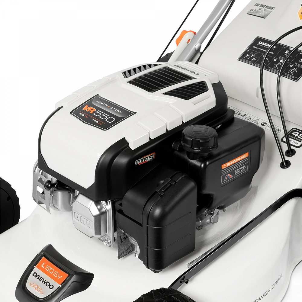 Бензиновый двигатель DAEWOO. 4-х тактный бензиновый двигатель DAEWOO series VR 550, объемом 150 см3 специально разработан для садовой техники. Он отличается надежностью и увеличенным моторным ресурсом, более низким уровнем шума и вибрации.