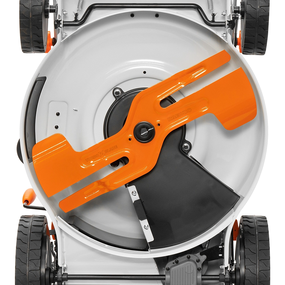 Бензиновый двигатель DAEWOO. 4-х тактный бензиновый двигатель DAEWOO series VR 550, объемом 150 см3 специально разработан для садовой техники. Он отличается надежностью и увеличенным моторным ресурсом, более низким уровнем шума и вибрации.