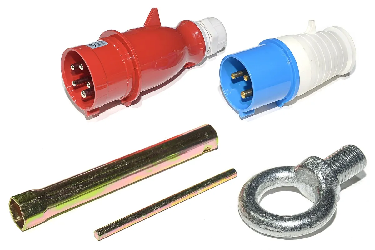| Комплектация | генератор, свечной ключ, колесный комплект, вилка для подключения общей нагрузки, инструкция по эксплуатации |