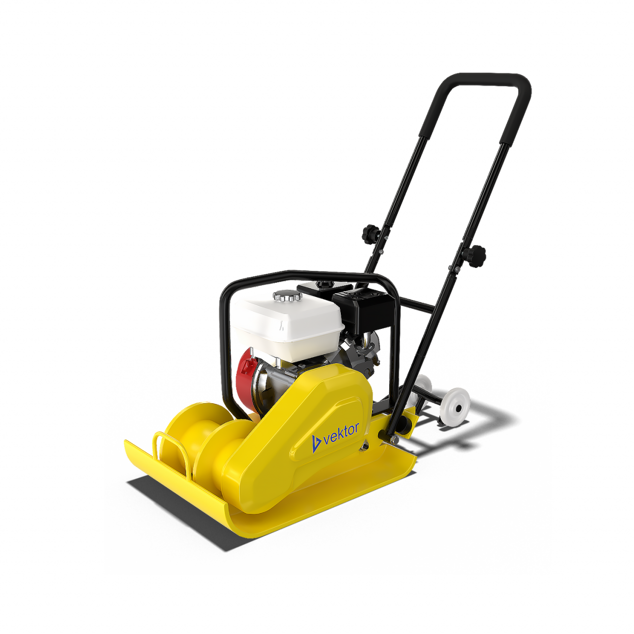 - Складывающаяся ручка управления и колёса для перемещения упрощают транспортировку виброплит Vektor и погрузку/разгрузку при доставке к месту работы;