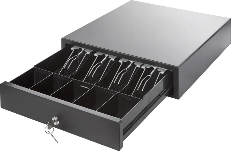 Горизонтальный денежный ящик PayTor HT-330P подходит для кафе, магазинов “у дома” и островных точек в торговых центрах.