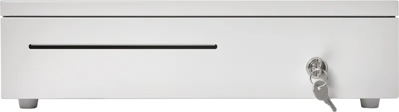 Электромеханический денежный ящик PayTor HT-410P с горизонтальным выдвижным лотком. Стандартный размер ящика упрощает комплектацию кассовой зоны в магазинах и заведениях любого формата.
