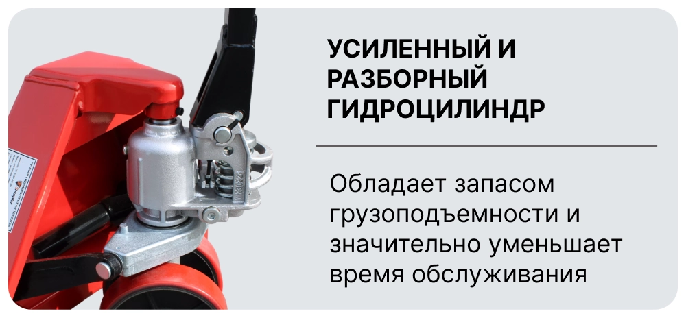 - Клапан защиты от перегрузки позволяет безопасно работать с грузом, вовремя предупреждая ситуацию превышения грузоподъемности.