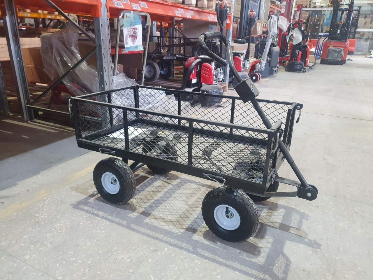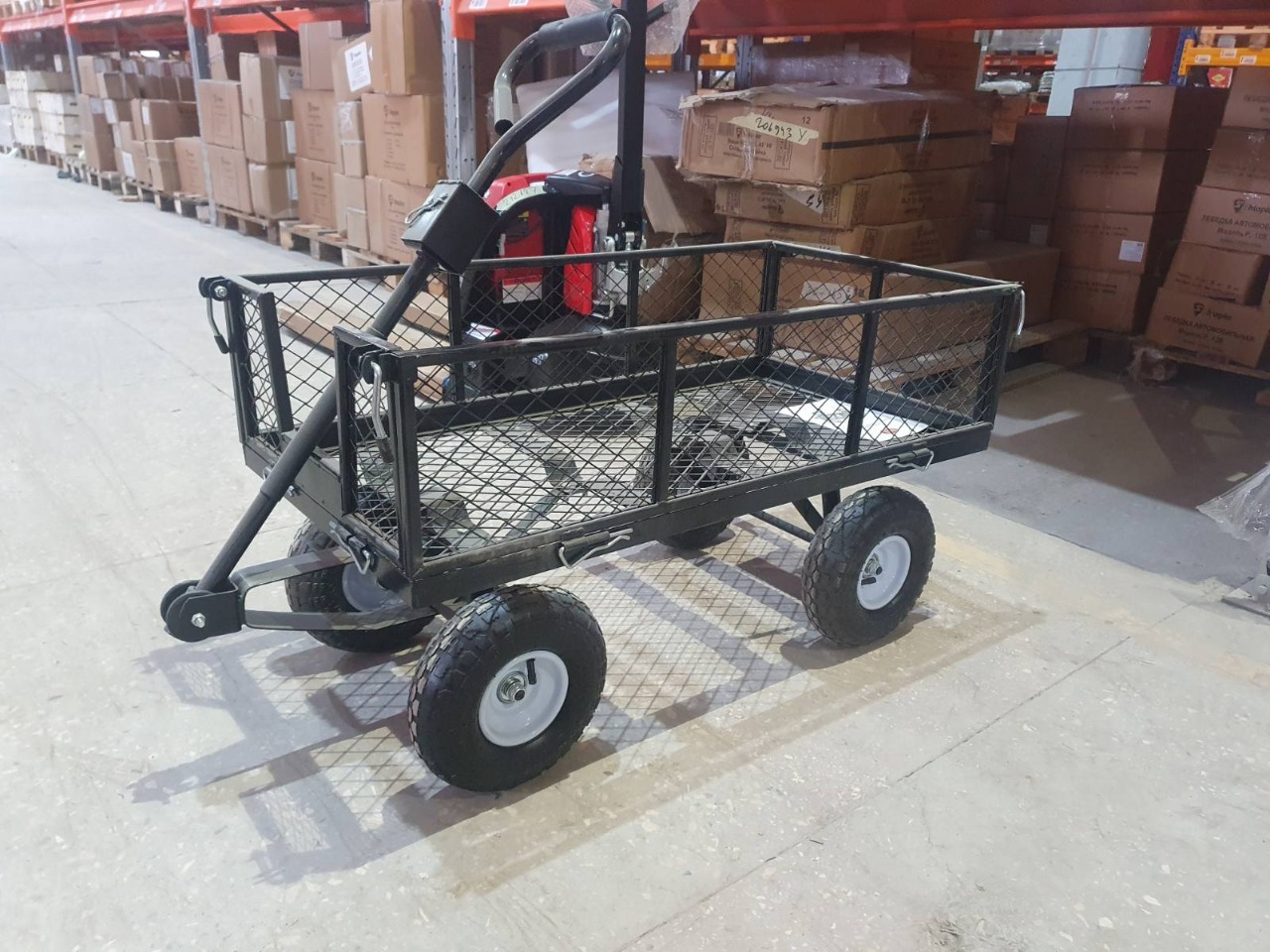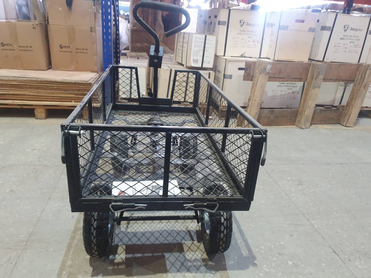 Тележка четырехколесная RAD ТС 300. Предназначена для перевозки грузов на складе или садовом участке. Рама и борта тележки изготовлены из цельносварной стальной трубы. Борта откидываются, грузоподъёмность 300 кг. Комплектуется пневматическими колесами на металлическом ободе.