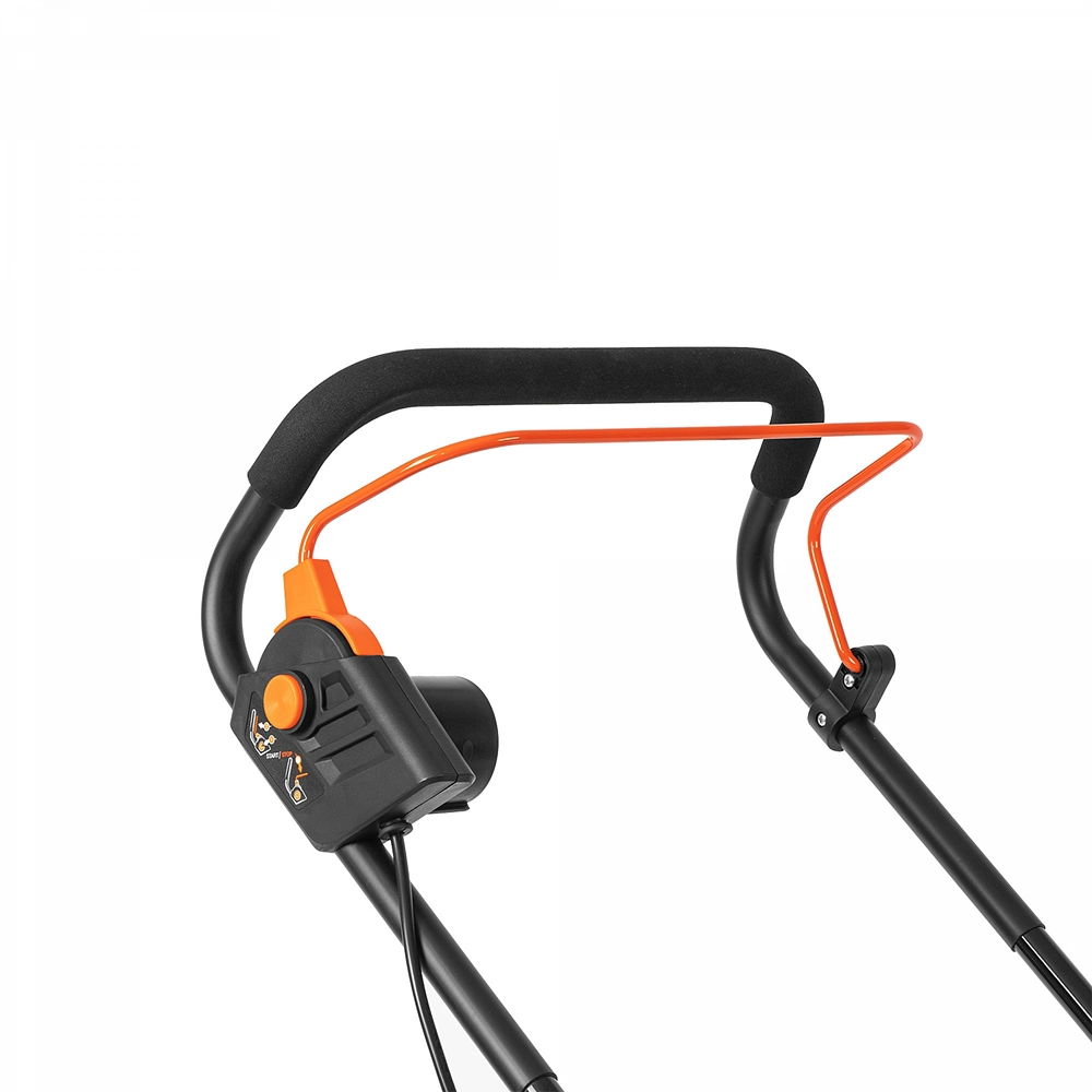 Контроль присутствия оператора. Рычаг управления двигателем моментально останавливает режущую гарнитуру, как только оператор отпускает рукоятку, во избежание получения случайных травм. Рычаг и рукоятка выполнены в эргономичном дизайне, что позволяет работать с косилкой длительное время без чувства усталости.