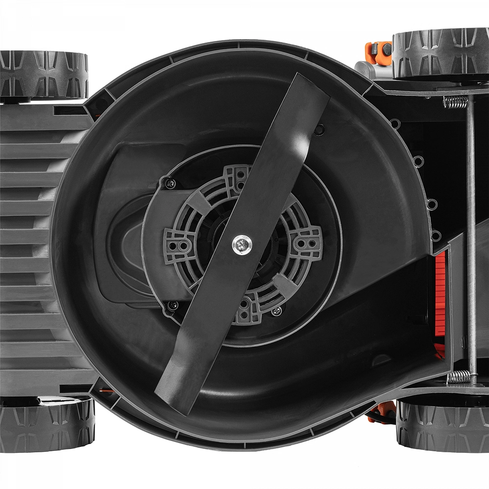 Прочный корпус из ABS пластика. Корпус газонокосилки сделан из ABS пластика и обладает высокой прочностью. Он легок, устойчив к влаге и безопасен. Этот материал обеспечивает оптимальную производительность и долговечность газонокосилки, делая ее незаменимым инструментом для ухода за газоном.