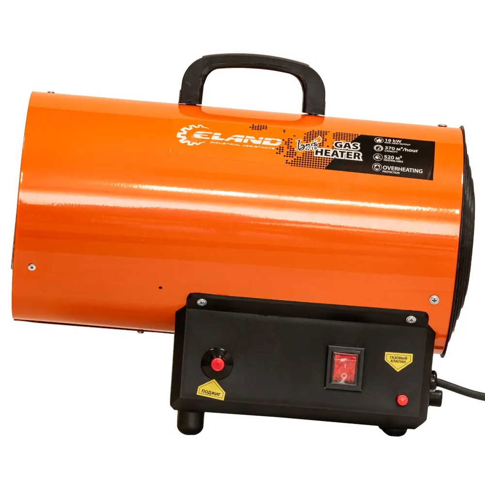 | Комплектация | нагреватель воздуха, газовый шланг, редуктор, ручка для переноски, руководство по эксплуатации, гарантийный талон |
