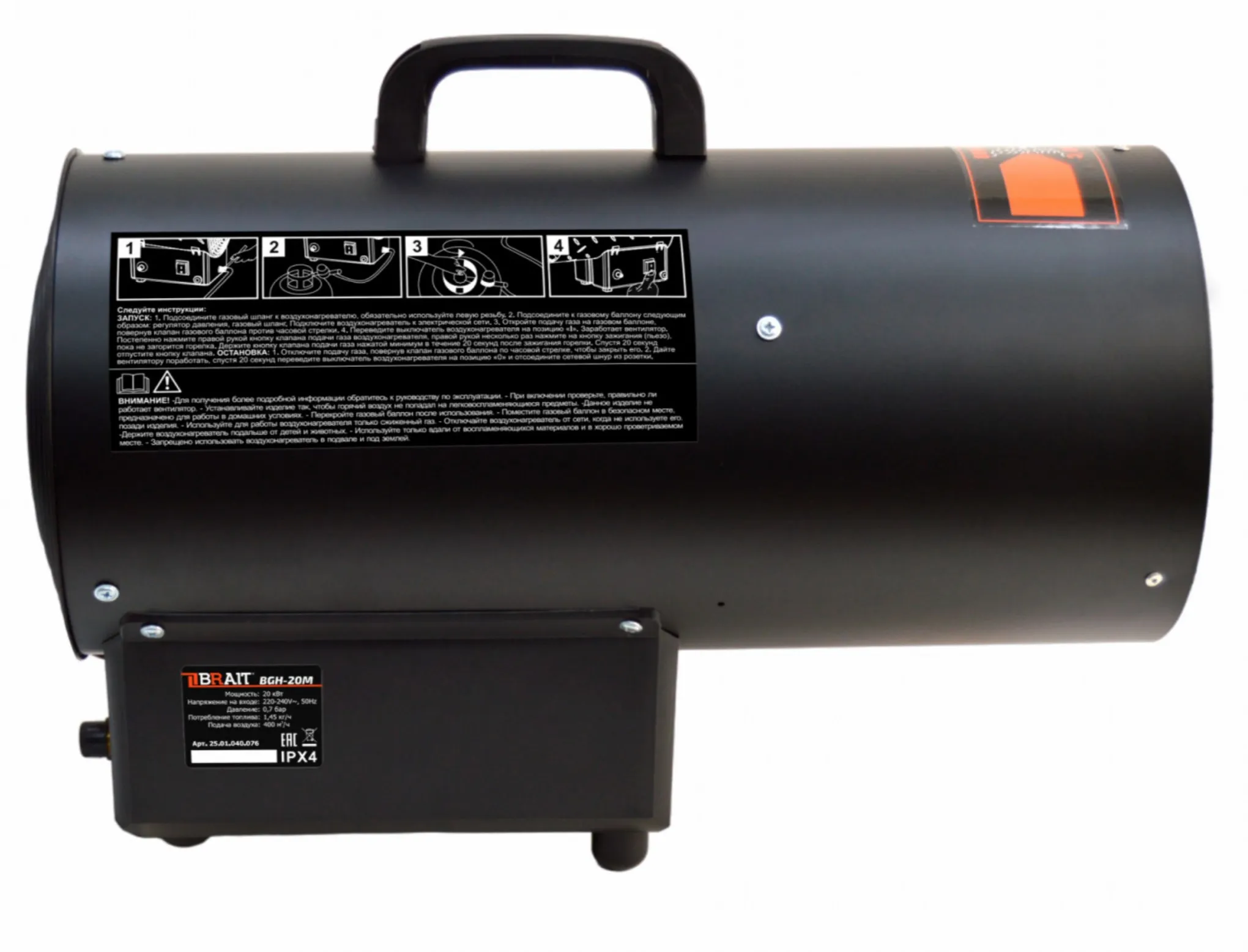 | Комплектация | Газовая пушка в сборе, Ручка для переноски - 1 шт, Газовый шланг - 1 шт, Редуктор давления - 1 шт, Инструкция по эксплуатации - 1 шт, Поставялется в коробке |