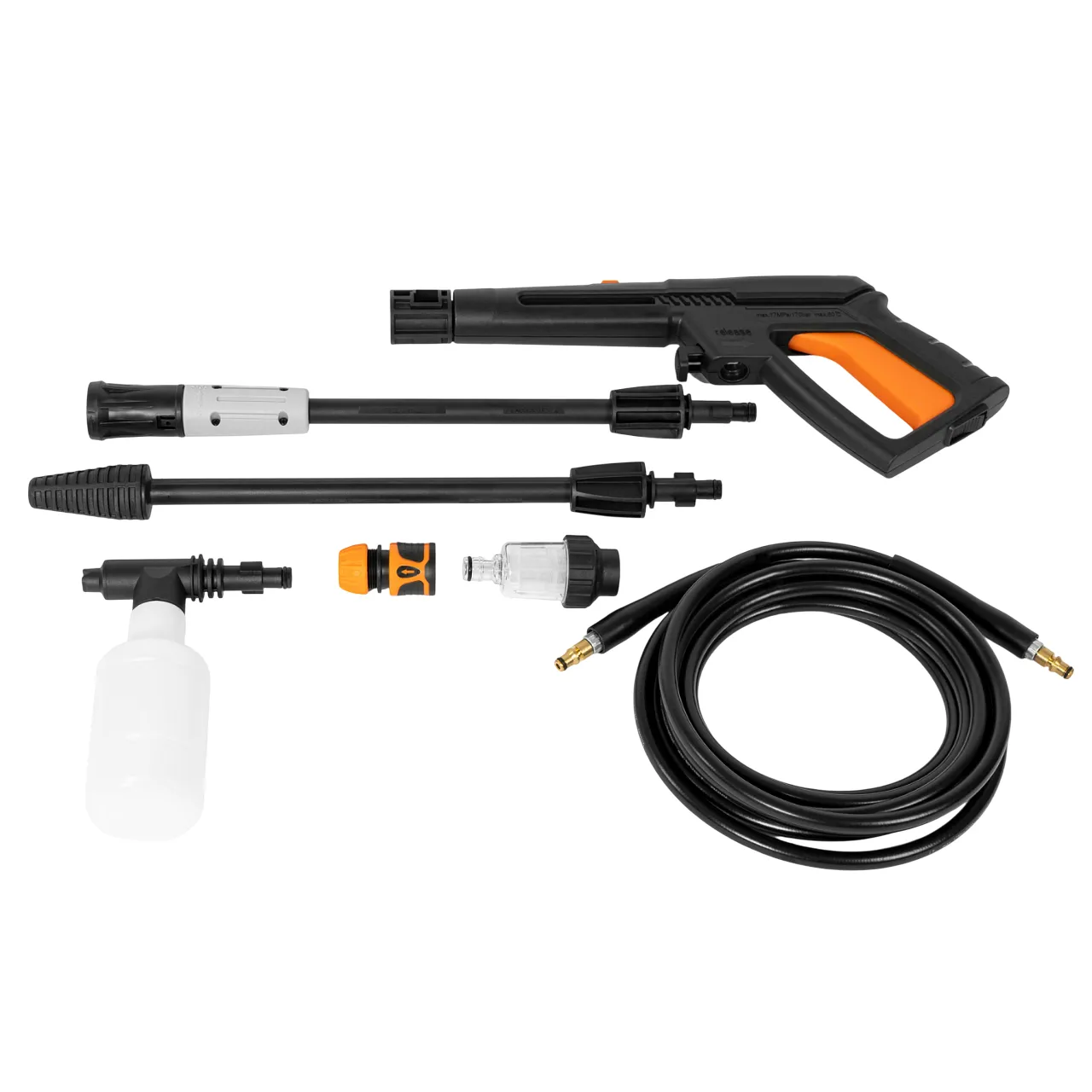Комплектация | мойка высокого давления, пистолет, шланг высокого давления, насадка на пистолет распылительная, насадка на пистолет грязевая фреза, дополнительный фильтр тонкой очистки, игла для прочистки сопла, руководство пользователя, гарантийный талон |