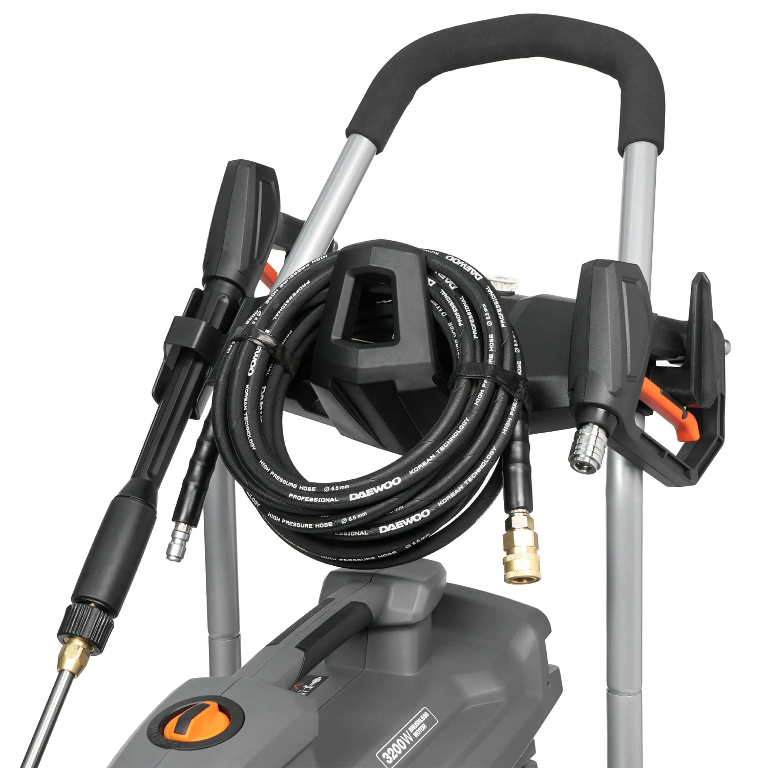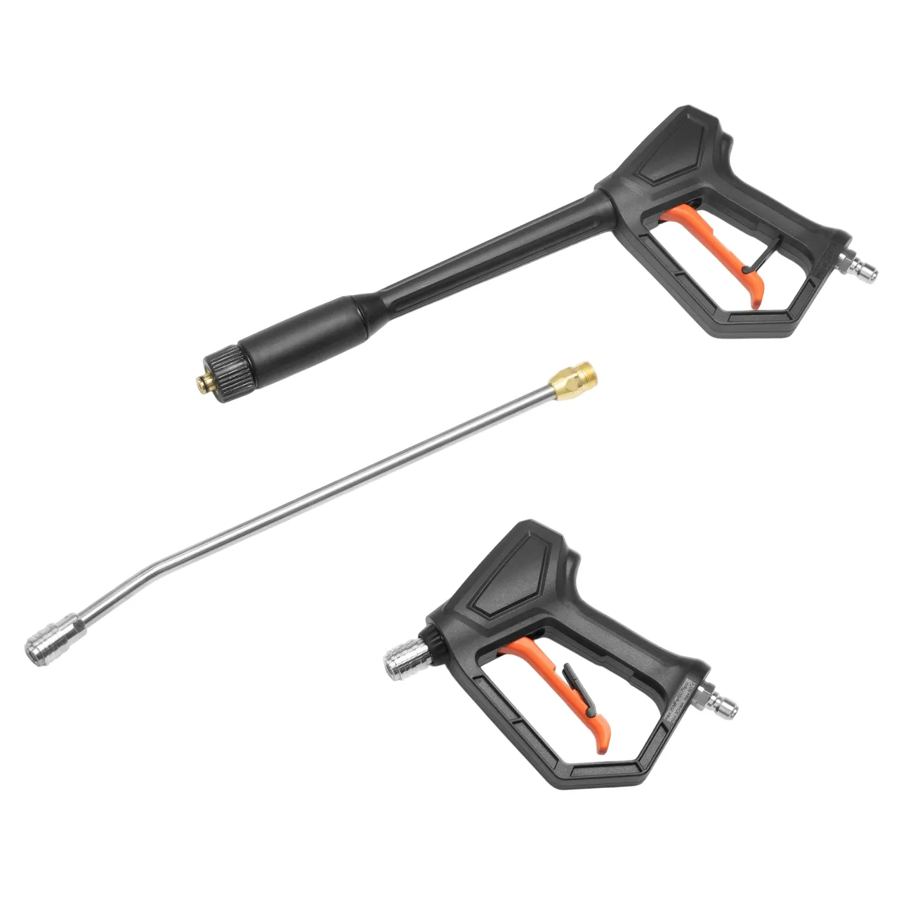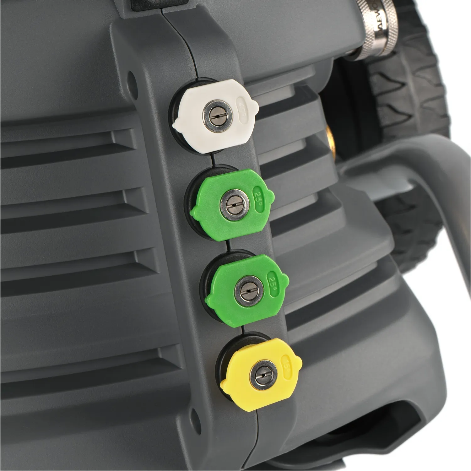 Комплектация | мойка высокого давления, профессиональный пистолет с металлическим соплом, дополнительный, короткий пистолет с быстросъемным соединением, армированный шланг высокого давления, быстросъемные насадки-форсунки, грязевая фреза, пеногенератор, фильтр тонкой очистки, быстросъёмный коннектор 1/2 с аквастопом, игла для прочистки форсунки, руководство по эксплуатации, гарантийный талон, коробка |