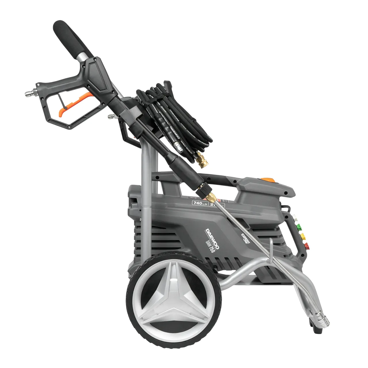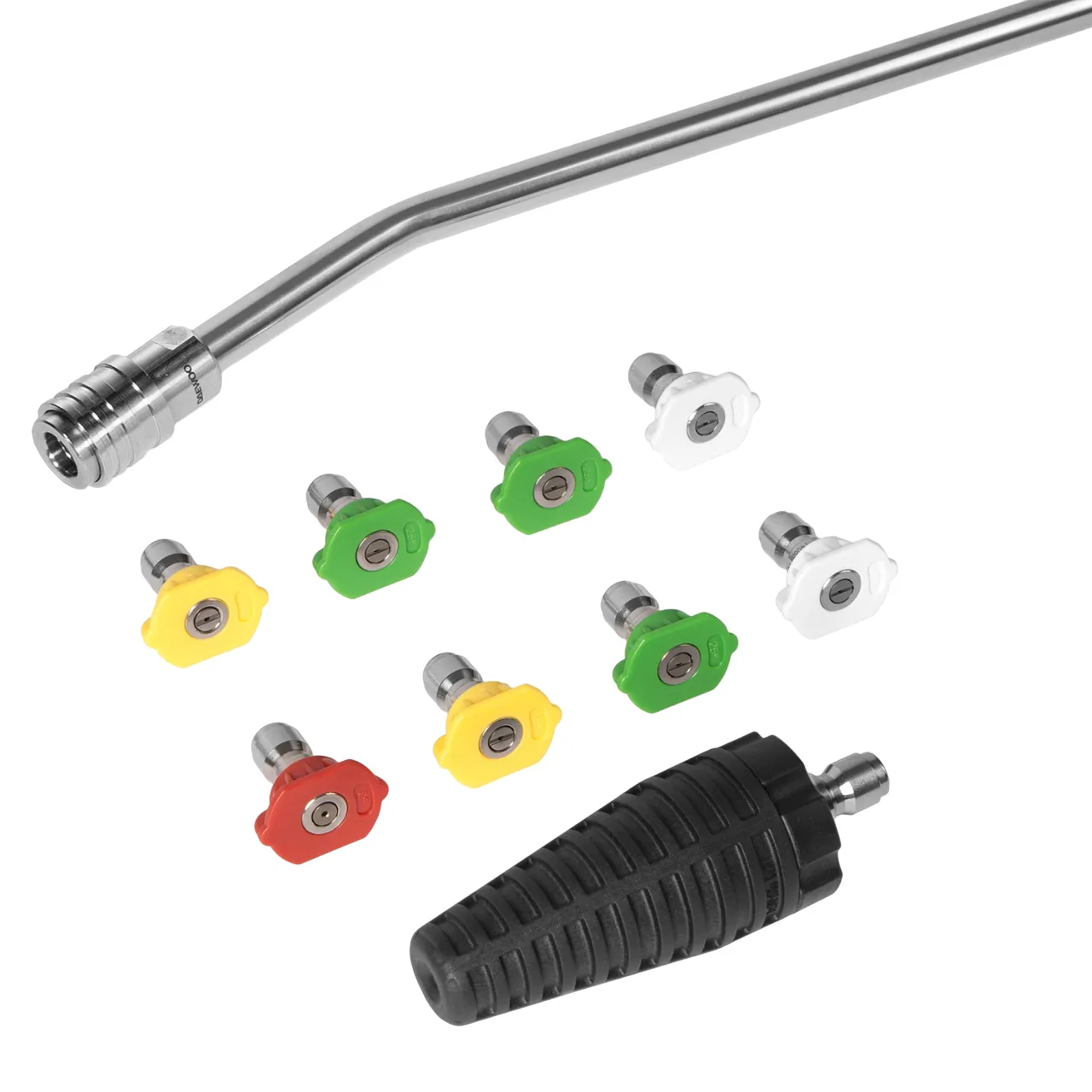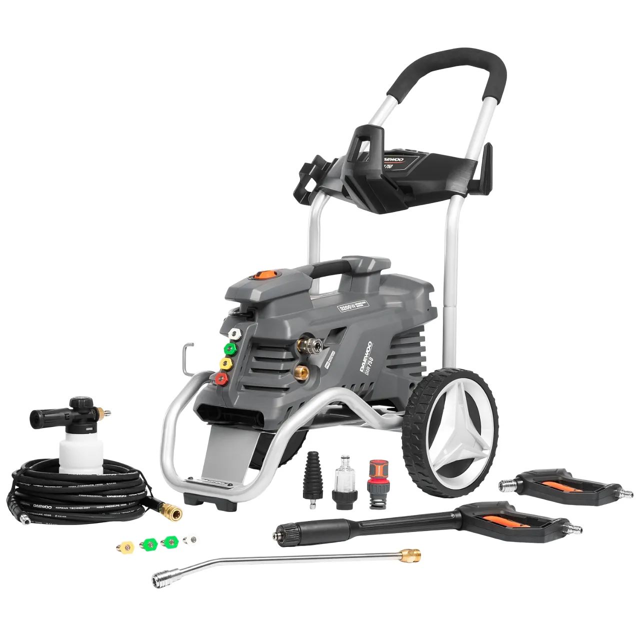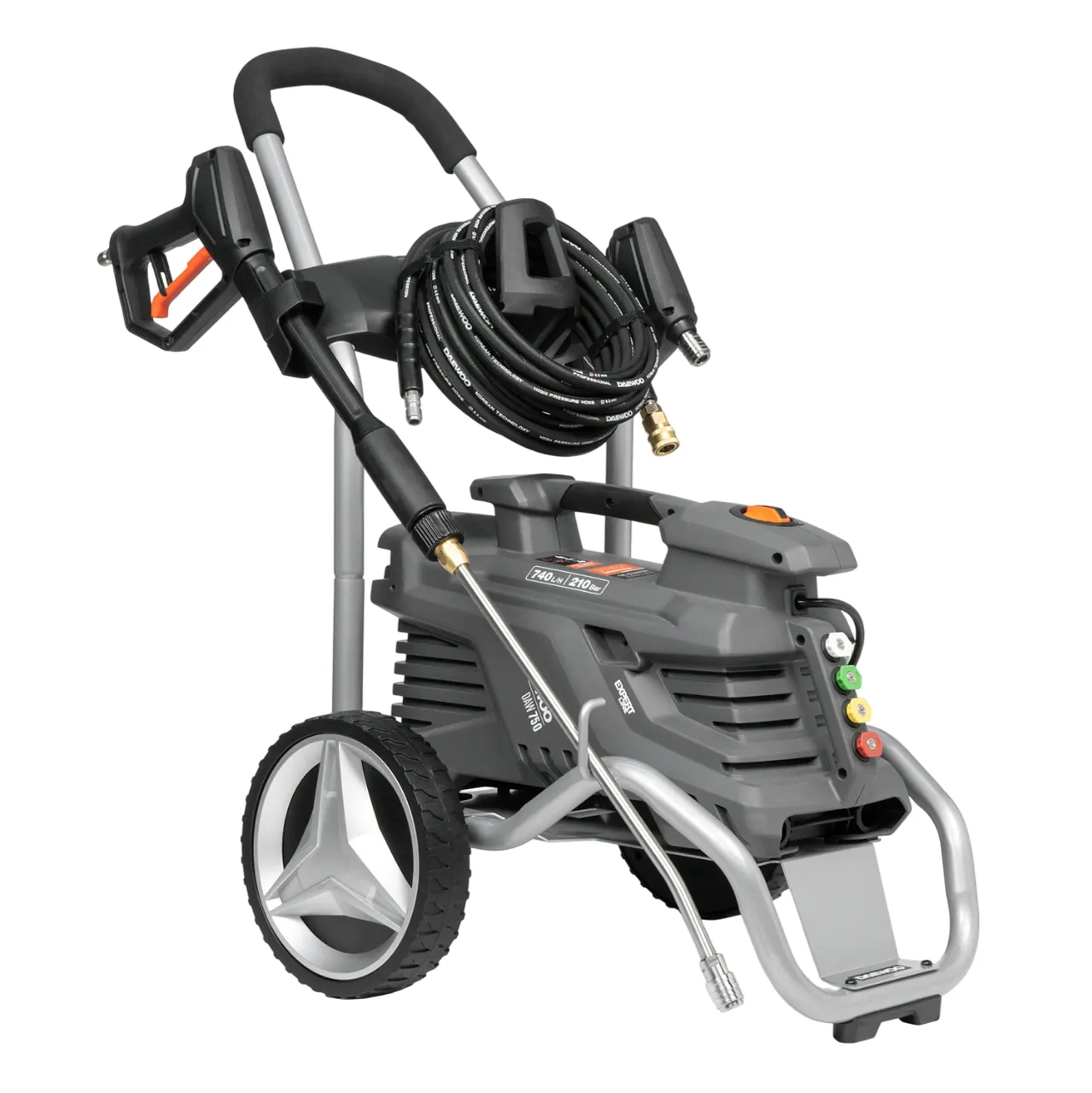 Комплектация | мойка высокого давления, профессиональный пистолет с металлическим соплом, дополнительный, короткий пистолет с быстросъемным соединением, армированный шланг высокого давления, быстросъемные насадки-форсунки, грязевая фреза, пеногенератор, фильтр тонкой очистки, быстросъёмный коннектор 1/2 с аквастопом, игла для прочистки форсунки, руководство по эксплуатации, гарантийный талон, коробка |