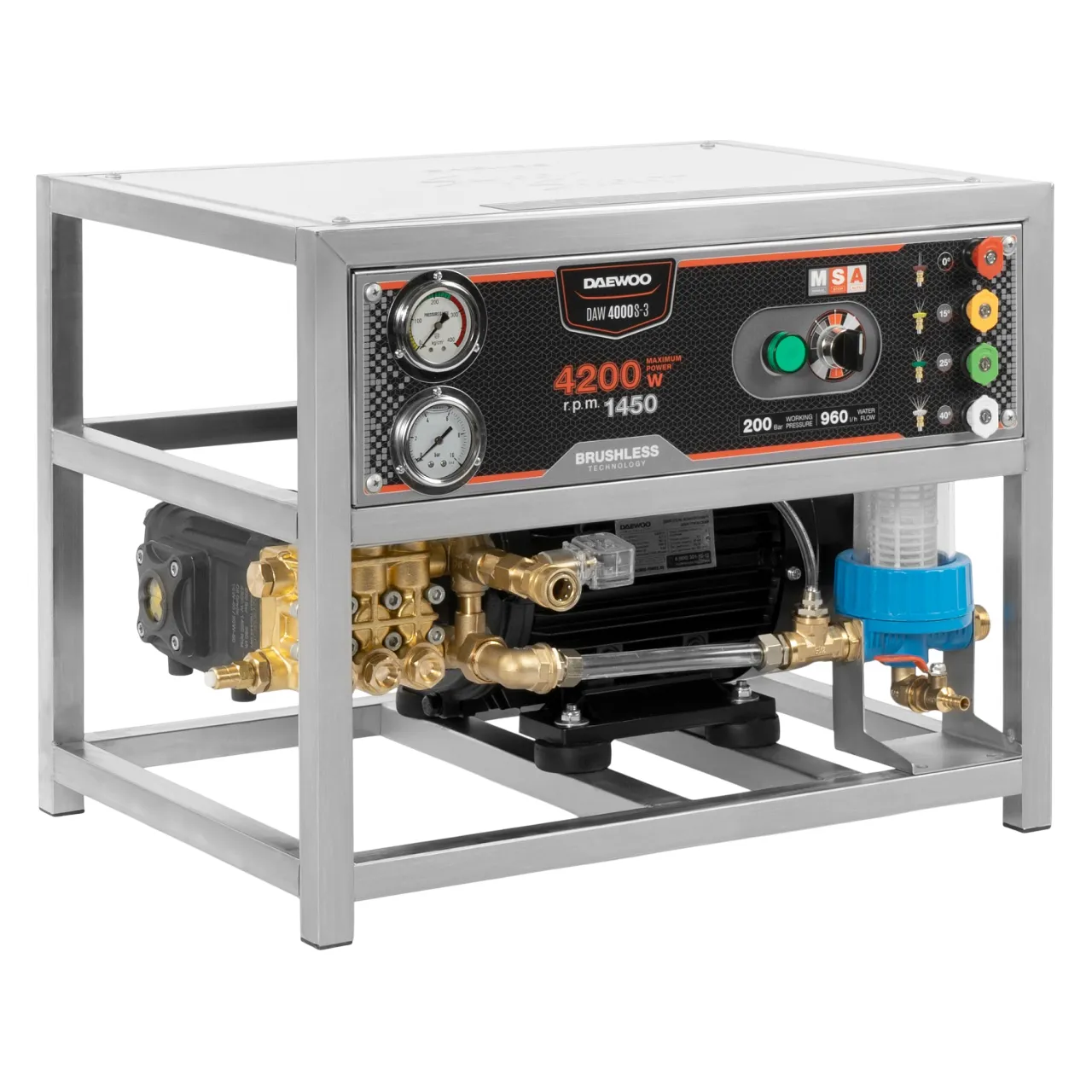 | Комплектация | мойка высокого давления, профессиональный пистолет DPG350 550 мм, металлическое копье из нержавеющей стали 455 мм, короткий пистолет для пеногенератора, армированный шланг высокого давления 10 м, профессиональный пеногенератор, быстросъемные форсунки (0°/15°/25°/40°) (4 шт.), фильтр тонкой очистки, кабель подключения 275 мм, инструкция, коробка |