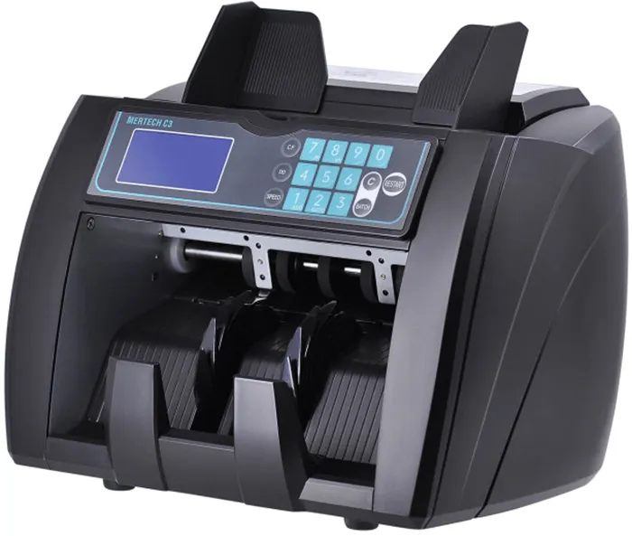 Профессиональный счетчик купюр MERTECH С-3 подходит для малого и среднего бизнеса. Это устройство быстро пересчитывает банкноты. Во время подсчета, бумажные деньги проверяются на подлинность. Проверка и подсчет денег выполняются автоматически. Вероятность ошибочного результата исключена.