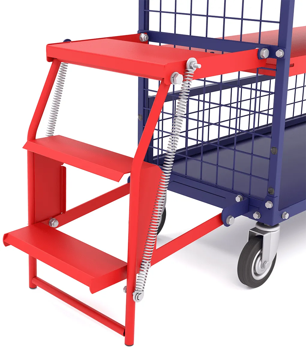 Возможна комплектация колесами с болтовым креплением Ø125 мм, а также лестницей, ручкой, информационным планшетом и полкой.