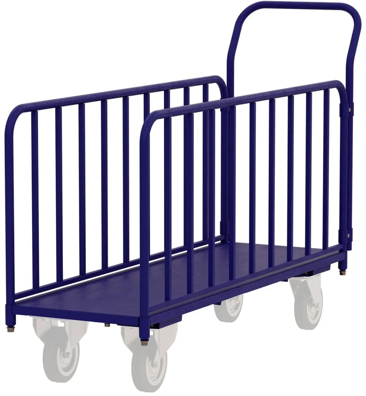 Тележка ДЛ, грузоподъемностью до 550 кг распределенной нагрузки, предназначена для перемещения длинномерных грузов. Наличие усиленных бортов позволяет надежно зафиксировать груз на платформе, например: рулон линолеума, обрезную деревянною доску, рулоны пленки, металлические и алюминиевые трубы и т.д.