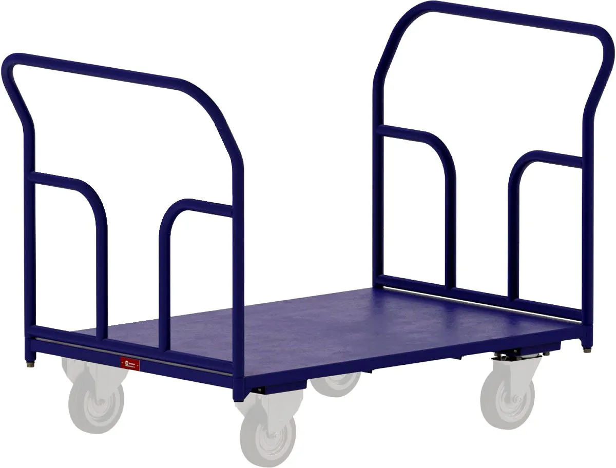 Платформенная тележка ТПД 4 разработана специально для торговых залов и выставочных павильонов. Каркас платформы изготавливается из трубы Ø30 мм, настил — металлический лист толщиной 1,0 мм. Ручки изготовлены из трубы Ø30 мм, заполнение — труба Ø25 мм.