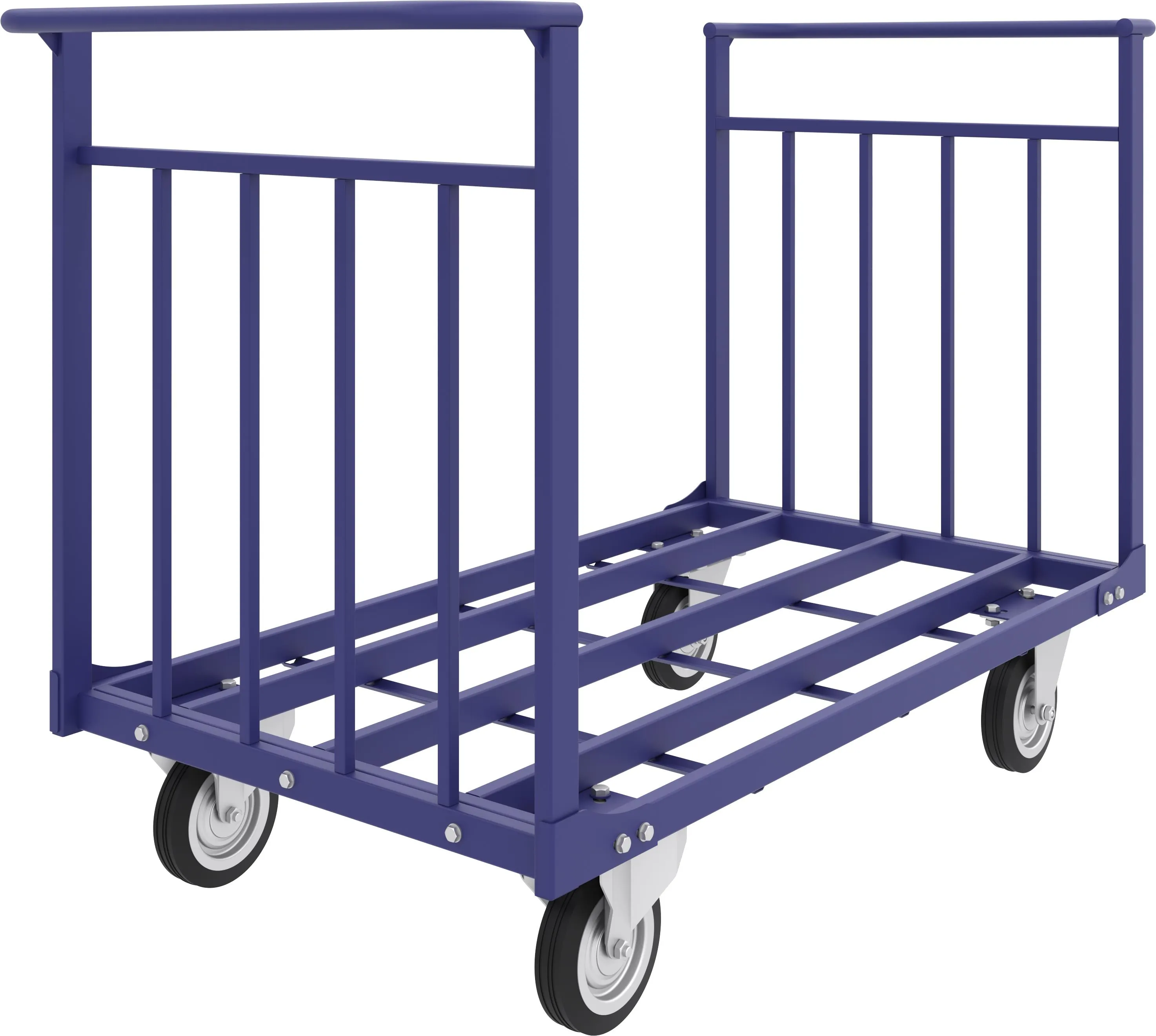 Усиленная платформенная тележка ТТД 5 применяется в случаях, когда требуется повышенная прочность и износостойкость. Тележка этой серии применяется для транспортировки небольших по объему, но тяжелых грузов.