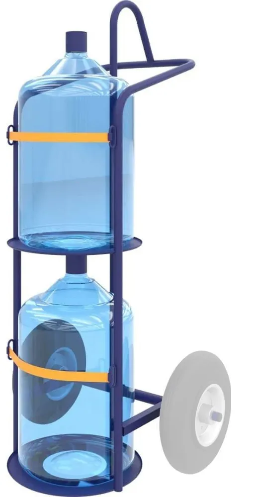 Тележка специализированная двухколёсная «ВД-2» предназначена для хранения и перемещения 2-х бутылей с водой объёмом 19л. Тележка может использоваться на складах, на промышленных предприятиях, в оптовой и розничной торговле, в быту.