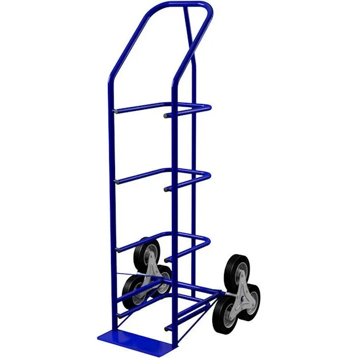Тележка ВД 4 с лестничными колесами, грузоподъемностью 95 кг, предназначена для перевозки четырех 19-ти литровых бутылей с водой. Каркас изготовлен из труб диаметром 25 мм. Глубина тележки с учетом лестничных колес — 617 мм.