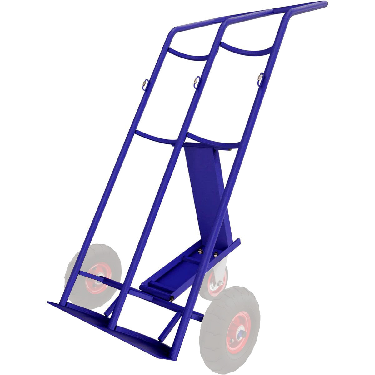 Возможна комплектация пневматическими и литыми колесами Ø250 мм, и дополнительным опорным колесом Ø160 мм, а также стяжным ремнем для фиксации баллонов.