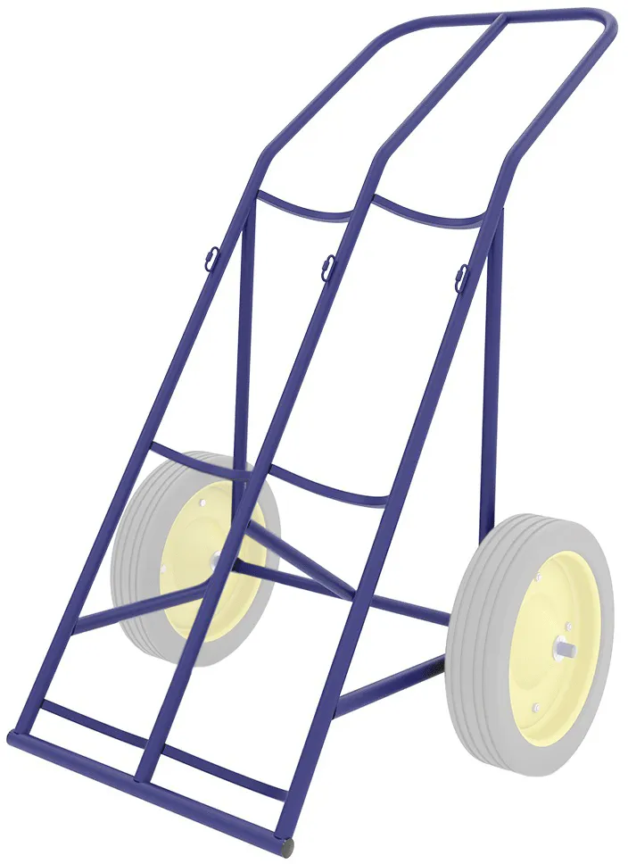 Каркас тележки выполнен из трубы круглого сечения диаметром 25х1,2 мм, ложементы для установки баллонов из профильной трубы 15 мм, фиксация баллонов — ремень.