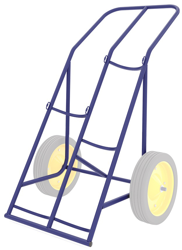 Каркас тележки выполнен из трубы круглого сечения диаметром 25x1,2 мм, ложементы для установки баллонов из профильной трубы 15 мм, фиксация баллонов — ремень.
