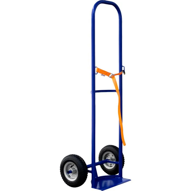 Тележка ПР 1 с фиксацией ремнем и литыми колесами, грузоподъемностью до 100 кг, предназначена для транспортировки одного пропанового баллона. Каркас тележки выполнен из трубы круглого сечения 25 мм. Основные преимущества: легкий вес, удобство использования, маневренность.