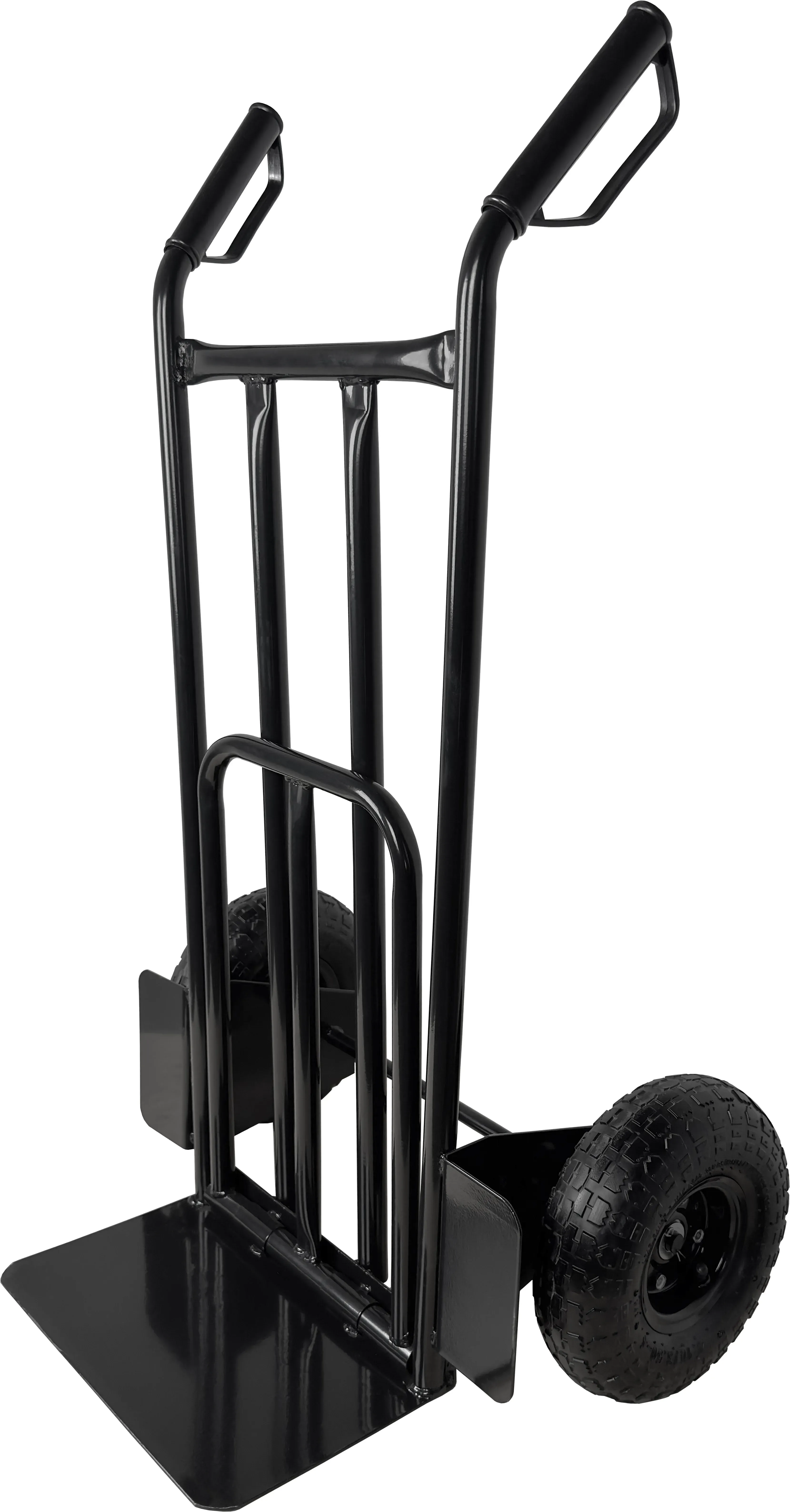 Двухколесная тележка RAD HT250P compact предназначена для работы на складах, производствах и торговых залах. Ее резиновые пневмоколеса позволяют ей без труда преодолевать неровности, а стальной корпус устойчив к повреждениям и деформации. Для удобства управления на рукояти установлены резиновые накладки. Дополнительная откидная платформа увеличивает площадь для установки груза, при этом тележка занимает меньше места при хранении.