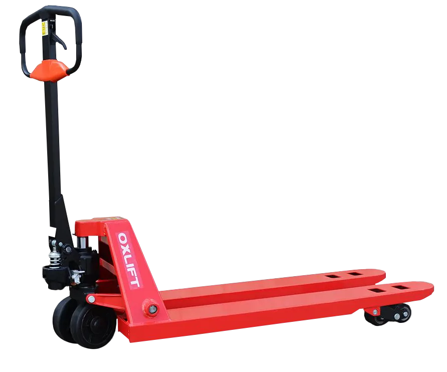 Грузоподъемность гидравлической тележки OX50 достигает 5000 кг (в 2-3 раза выше, чем у стандартных моделей). Эта рохля предназначена для ручной перевозки особо тяжелых грузов на усиленных поддонах и в контейнерах, крупного промышленного оборудования. Рекомендуется для применения на металлургических, металлообрабатывающих, литейных и машиностроительных предприятиях.