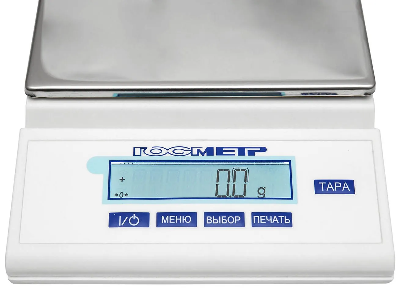 - Полуавтоматическая юстировка внешней гирей с возможностью введения поправки на гирю; Дисплей с крупными легко считываемыми символами и подсветкой.
