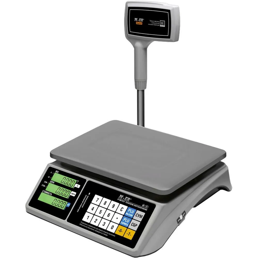 Весы M-ER 328ACPX-32.5 LCD предназначены для быстрого взвешивания и фасовки товаров, выполнения торговых расчетов. Эта модификация отличается наличием табло на стойке. Результаты взвешивания и расчетов отображаются на LCD экране. Цвет корпуса: белый. В конструкции нет интерфейсов для подключения к ПК, онлайн-кассе, POS-системе. Используется на предприятиях, в заведениях общественного питания, в розничных магазинах.