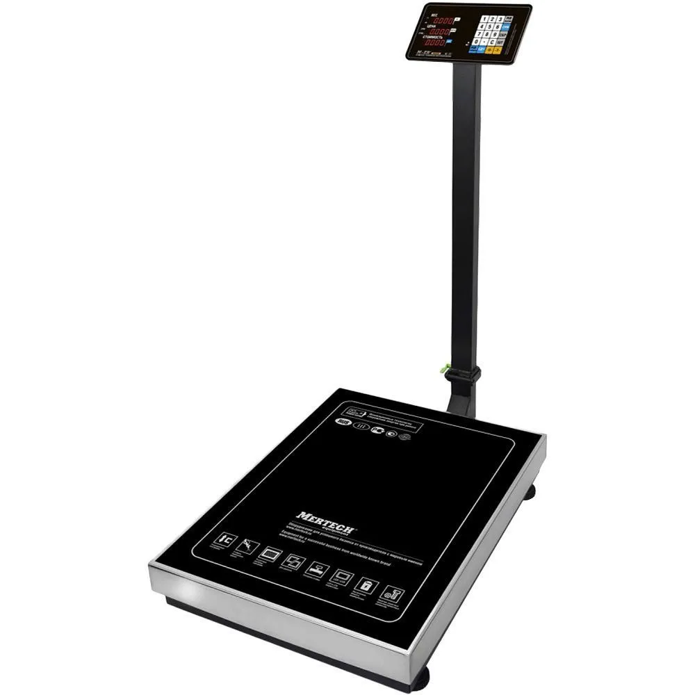 Результаты измерений и подсчетов выводятся на LED-дисплей. Табло расположено на складной стойке. Они показывают массу и цену товара, общую стоимость покупки. Материалы корпуса устойчивы к коррозии. Перепады температур от -10С до +40С не влияют на точность измерений.