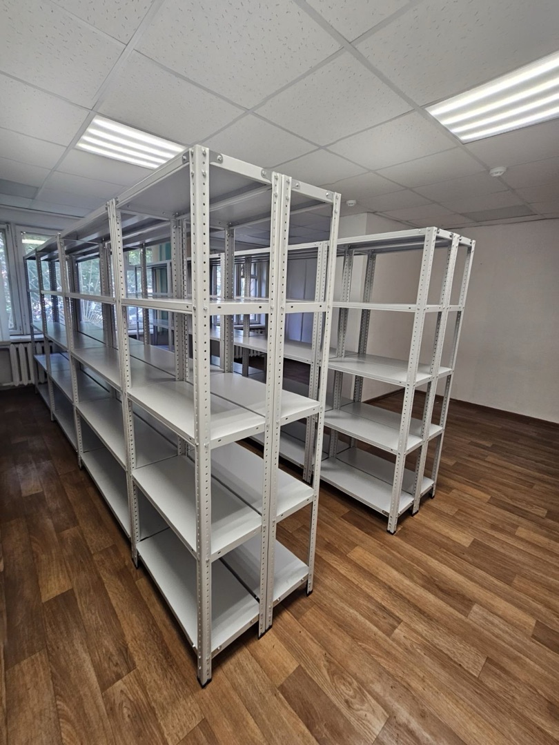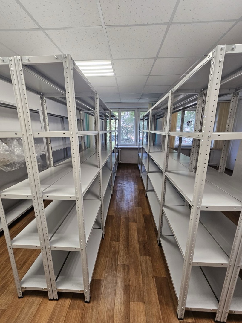 Для выполнения поставленной задачи, мы подобрали - архивные стеллажи типа «САМ». Стеллаж типа CАМ - это сборно-разборная конструкция, состоящая из полок, стоек, пластиковых подпятников и уголков жесткости скрепленные между собой болтовым соединением. Конструкция стеллажа покрыта качественным полимерным покрытием светло-серого цвета. Покрытие защищает его от коррозии и увеличивает срок службы конструкции.