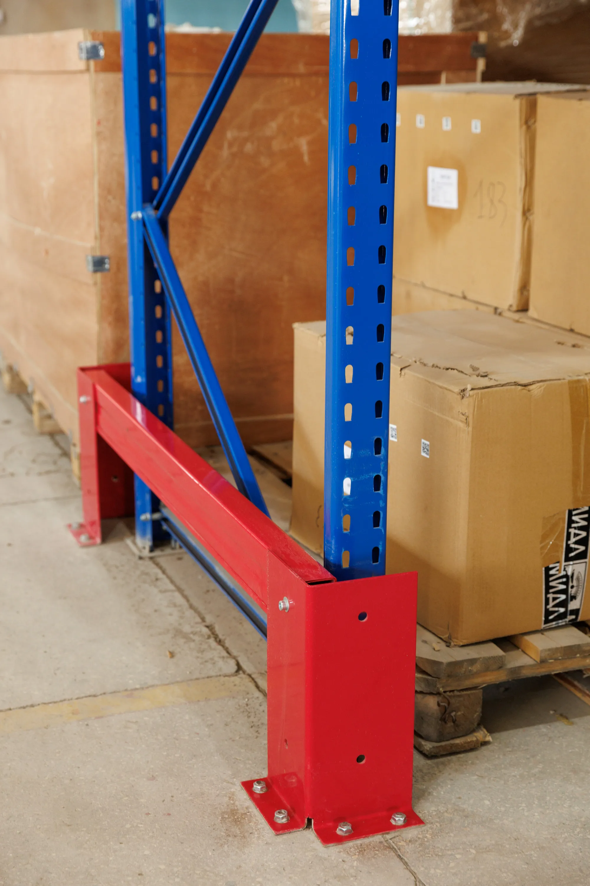 В конструкции стеллажных систем предусмотрены специальные защитные ограждения, отбойники. Они защищают рамы от столкновения или наезда на них, это в свою очередь увеличивает срок эксплуатации и безопасность конструкции.